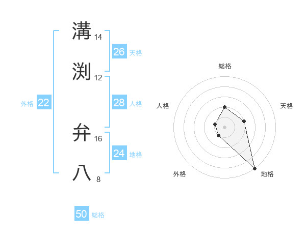 溝渕 弁八さんの総格は50画の2点!