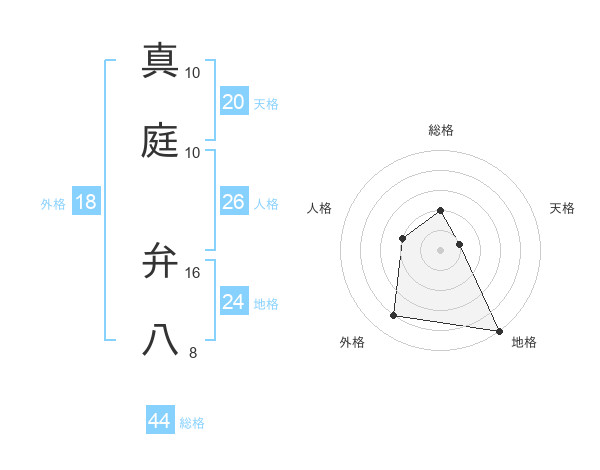 真庭 弁八さんの総格は44画の2点!