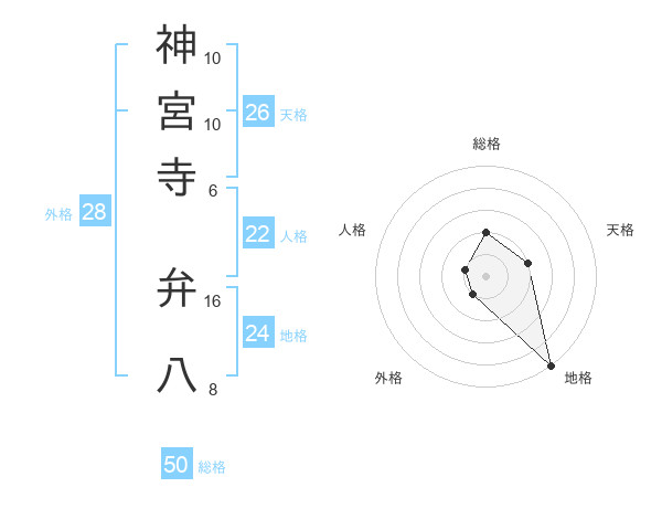 神宮寺 弁八さんを姓名の画数から五運を鑑定