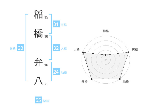 稲橋 弁八さんを姓名の画数から五運を鑑定