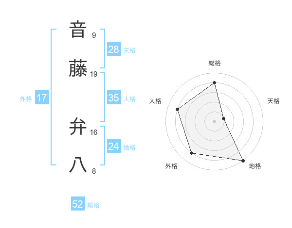 音藤 弁八さんを姓名の画数から五運を鑑定