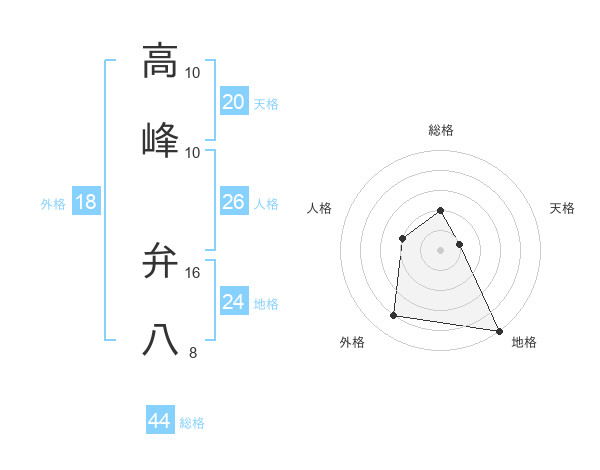 高峰 弁八さんの総格は44画の2点!
