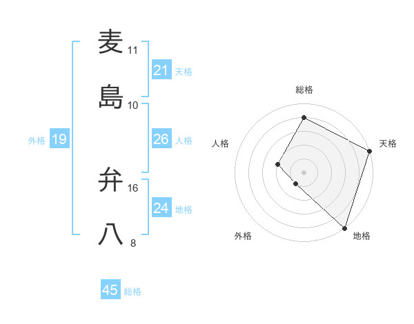 麦島 弁八さんを姓名の画数から五運を鑑定