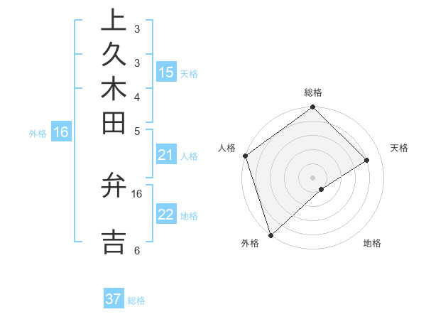 上久木田 弁吉さんの総格は37画の5点!