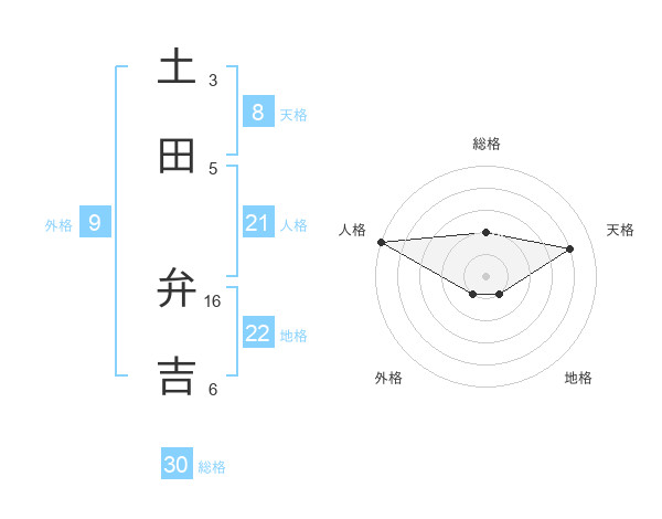 土田 弁吉さんを姓名の画数から五運を鑑定