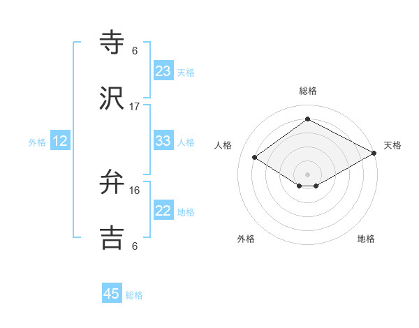 寺沢 弁吉さんの天格は23画の5点!