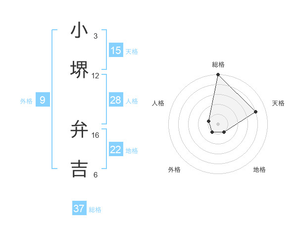 小堺 弁吉さんを姓名の画数から五運を鑑定