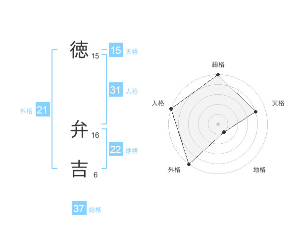 徳 弁吉さんの外格は21画の5点!