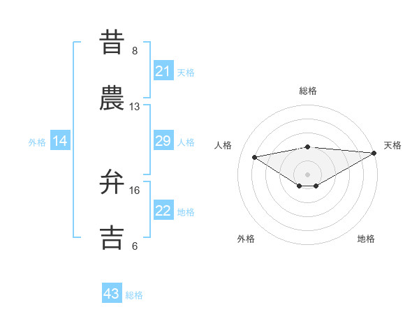 昔農 弁吉さんの天格は21画の5点!