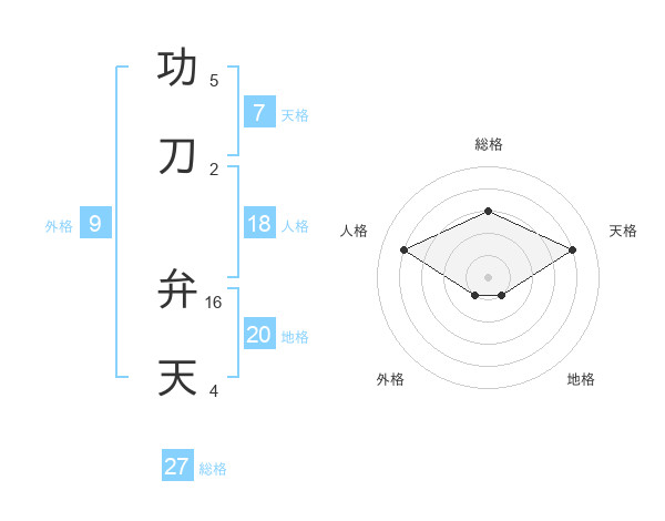 功刀 弁天さんを姓名の画数から五運を鑑定