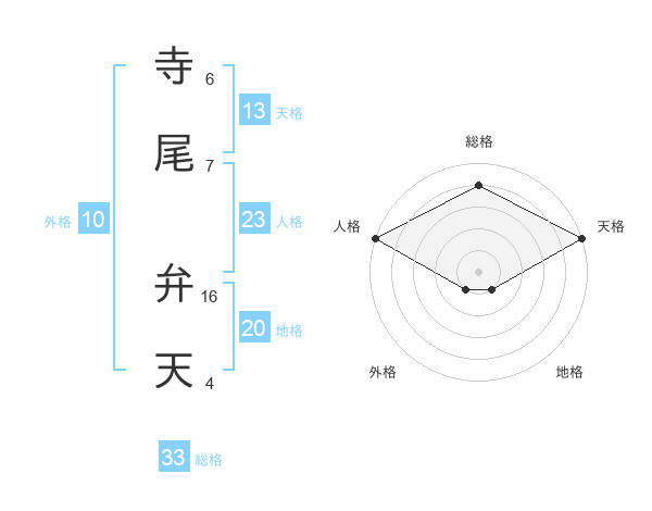 寺尾 弁天さんの人格は23画の5点!