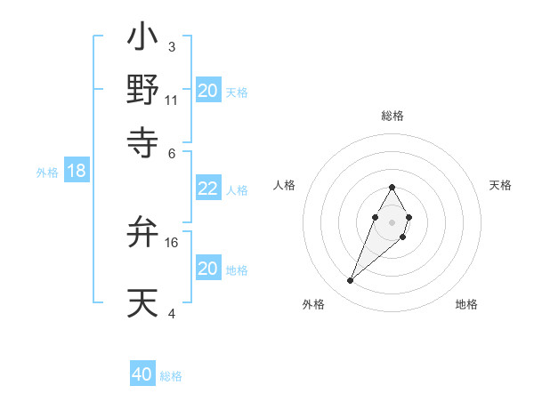 小野寺 弁天さんの外格は18画の4点!