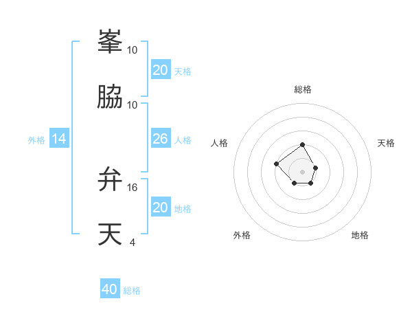 峯脇 弁天さんを姓名の画数から五運を鑑定
