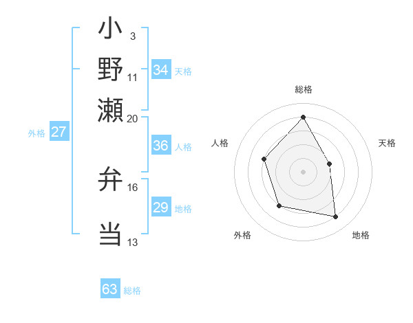 小野瀬 弁当さんを姓名の画数から五運を鑑定