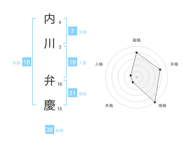 内川 弁慶さんを姓名の画数から五運を鑑定