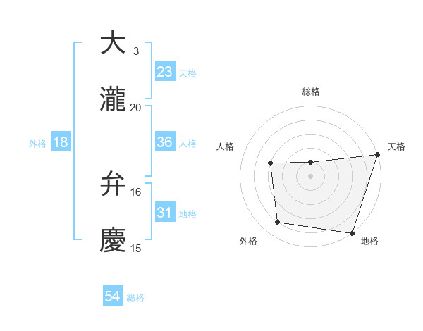 大瀧 弁慶さんを姓名の画数から五運を鑑定