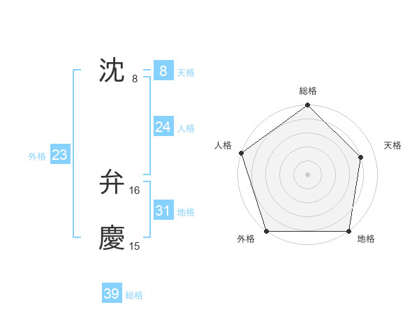 沈 弁慶さんを姓名の画数から五運を鑑定