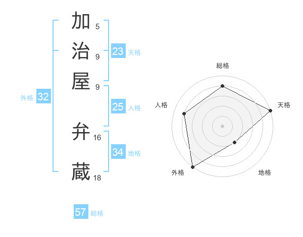 加治屋 弁蔵さんを姓名の画数から五運を鑑定