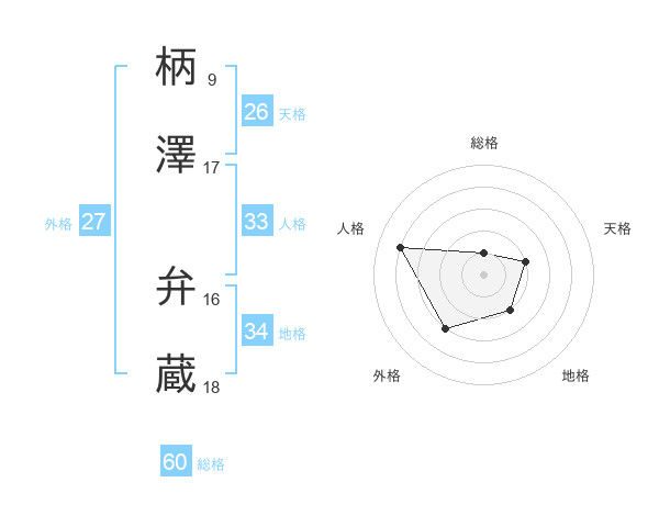 柄澤 弁蔵さんを姓名の画数から五運を鑑定