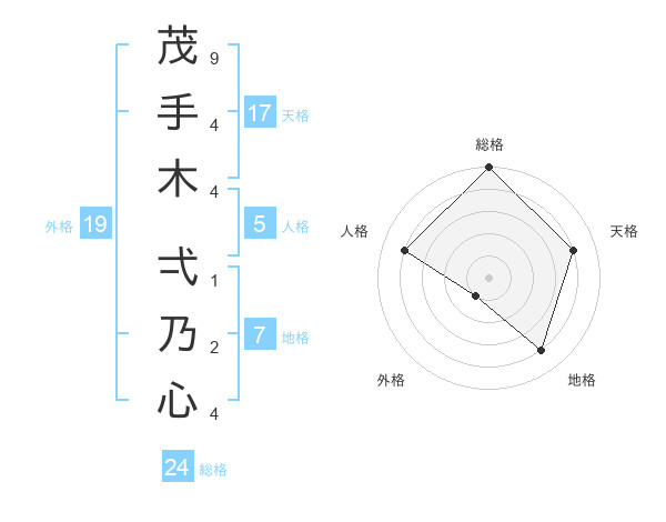 茂手木 弌乃心さんを姓名の画数から五運を鑑定