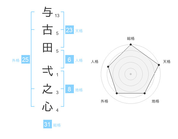 与古田 弌之心さんを姓名の画数から五運を鑑定