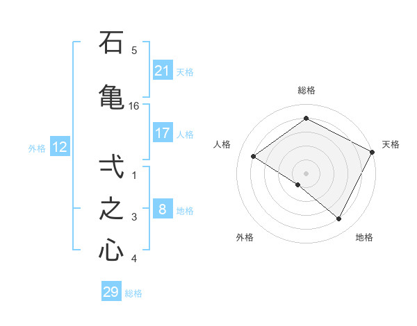 石亀 弌之心さんを姓名の画数から五運を鑑定