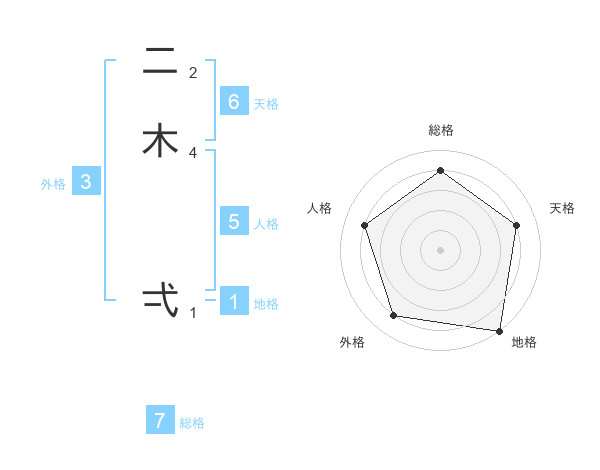 二木 弌さんの総格は7画の4点!