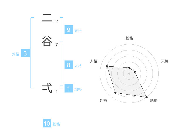 二谷 弌さんの天格は9画の1点!