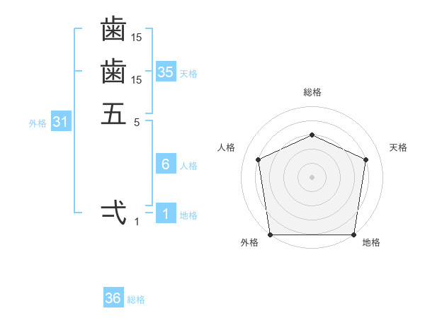 歯歯五 弌さんの天格は35画の4点!