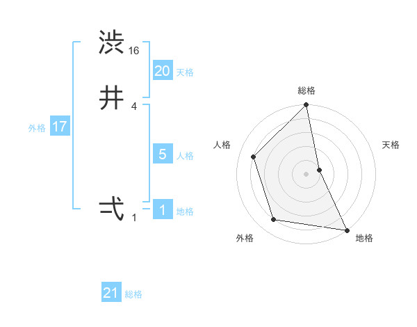 渋井 弌さんの総格は21画の5点!