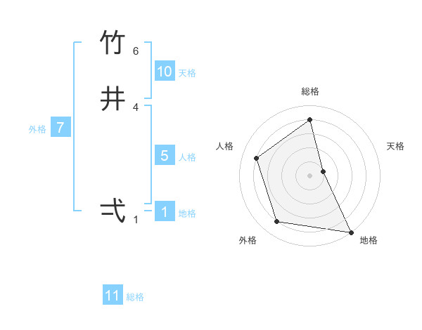 竹井 弌さんの総格は11画の4点!