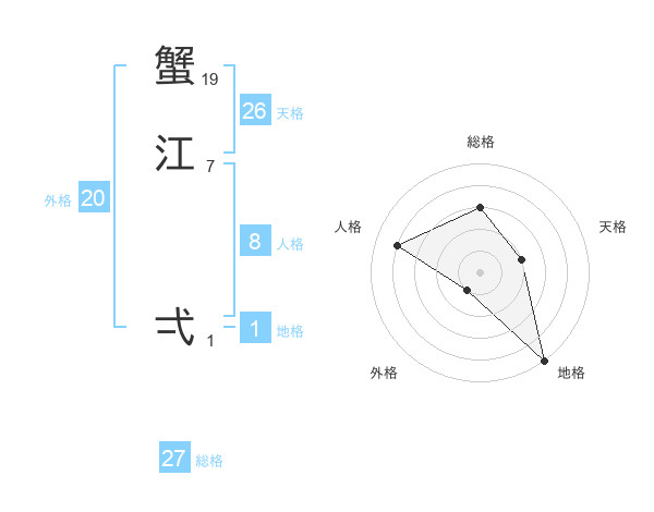 蟹江 弌さんの総格は27画の3点!