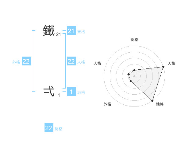 鐵 弌さんの外格は22画の1点!