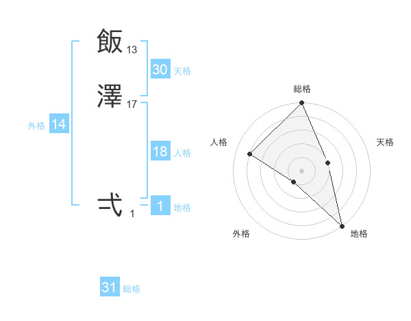 飯澤 弌さんの総格は31画の5点!
