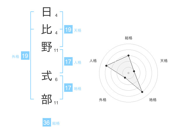 日比野 式部さんの外格は19画の1点!