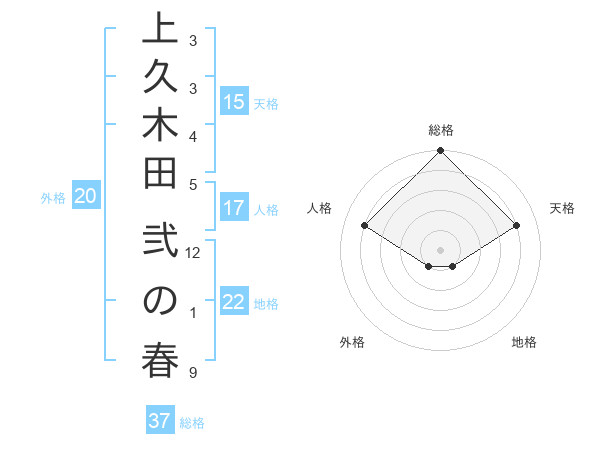 上久木田 弐の春さんの総格は37画の5点!