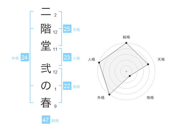 二階堂 弐の春さんを姓名の画数から五運を鑑定