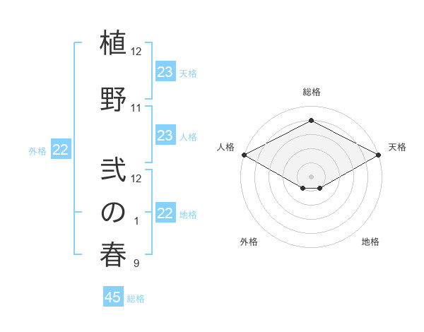 植野 弐の春さんを姓名の画数から五運を鑑定