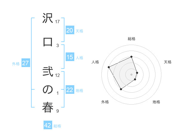 沢口 弐の春さんを姓名の画数から五運を鑑定
