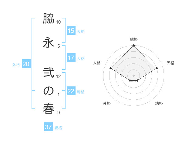 脇永 弐の春さんを姓名の画数から五運を鑑定