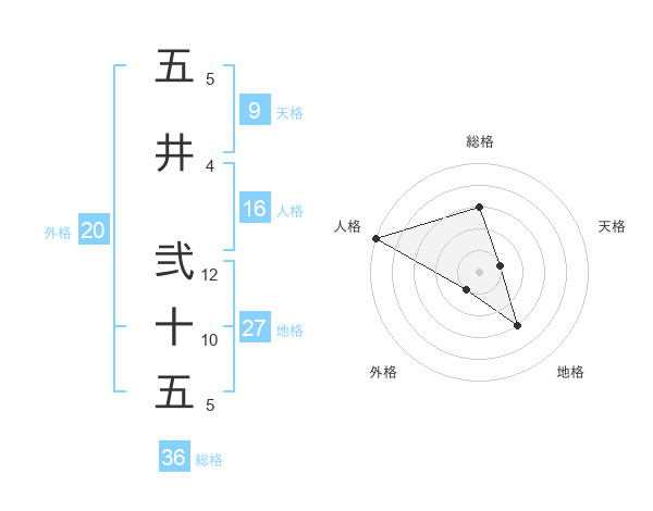 五井 弐十五さんを姓名の画数から五運を鑑定