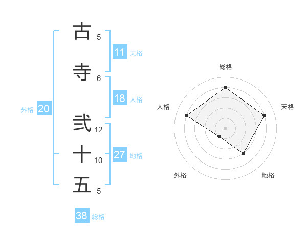 古寺 弐十五さんの総格は38画の4点!