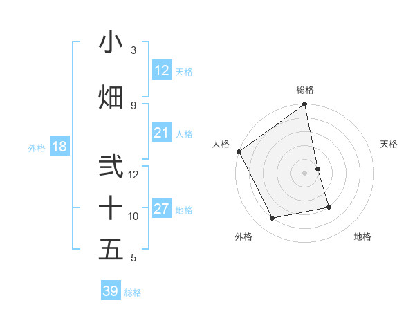 小畑 弐十五さんを姓名の画数から五運を鑑定