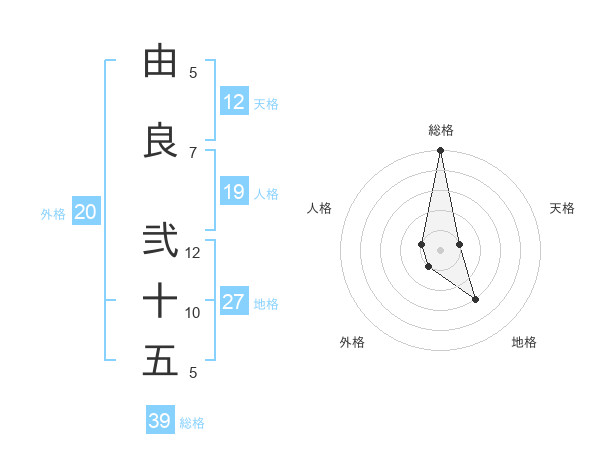由良 弐十五さんを姓名の画数から五運を鑑定