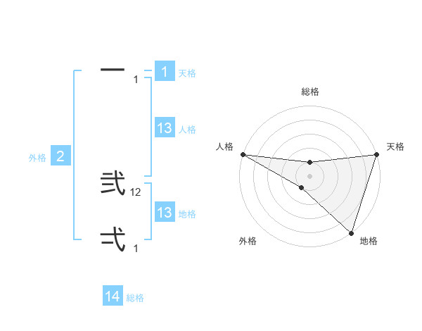 一 弐弌さんの総格は14画の1点!