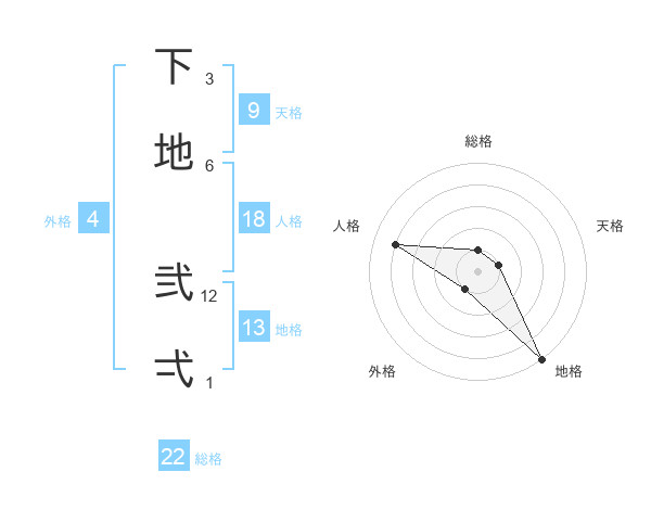 下地 弐弌さんを姓名の画数から五運を鑑定