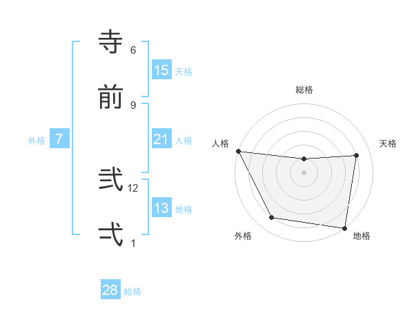 寺前 弐弌さんの総格は28画の1点!