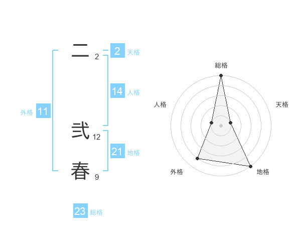 二 弐春さんの総格は23画の5点!
