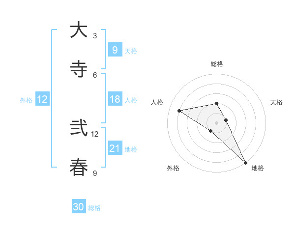 大寺 弐春さんの総格は30画の2点!