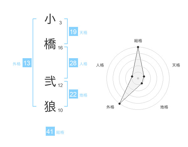 小橋 弐狼さんを姓名の画数から五運を鑑定